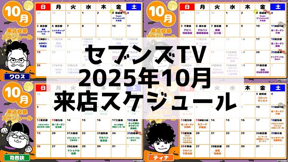 【2025年10月】セブンズTV来店スケジュールまとめ【ワロス・ytr・司芭扶・ティナ】